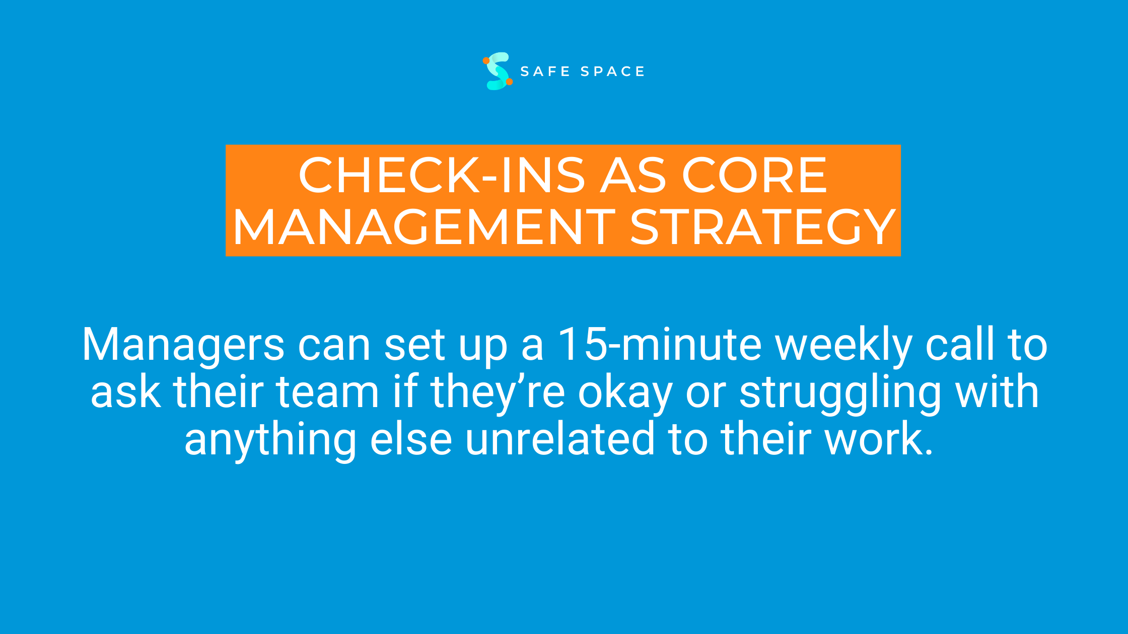 Occasional surveys from human resources don’t cut it anymore. The stress of the pandemic has taken a toll on everyone. All of us have found some form of struggle with lockdowns and quarantines. Inevitably, this has affected the way we work or the quality of work we produce. The most straightforward thing companies can do is to check in with their employees personally. For instance, managers can set up a 15-minute weekly call to ask their team if they’re okay or struggling with anything else unrelated to their work.